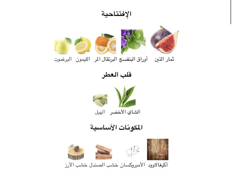 •المقدمة: التين 🍈، أوراق البنفسج 🌿، البرتقال المر 🍊، الليمون 🍋، البرغموت 🍋