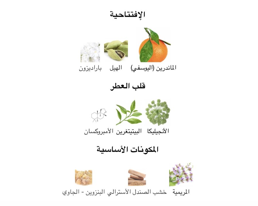 •القاعدة: الميرمية 🌿، خشب الصندل الأسترالي 🪵، البنزوين 🌟