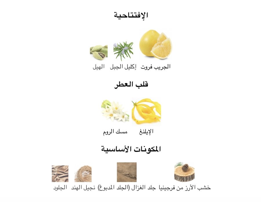 •القاعدة: أرز فرجينيا 🌲، جلد الغزال 🤎، نجيل الهند 🌿، الجلد 🖤