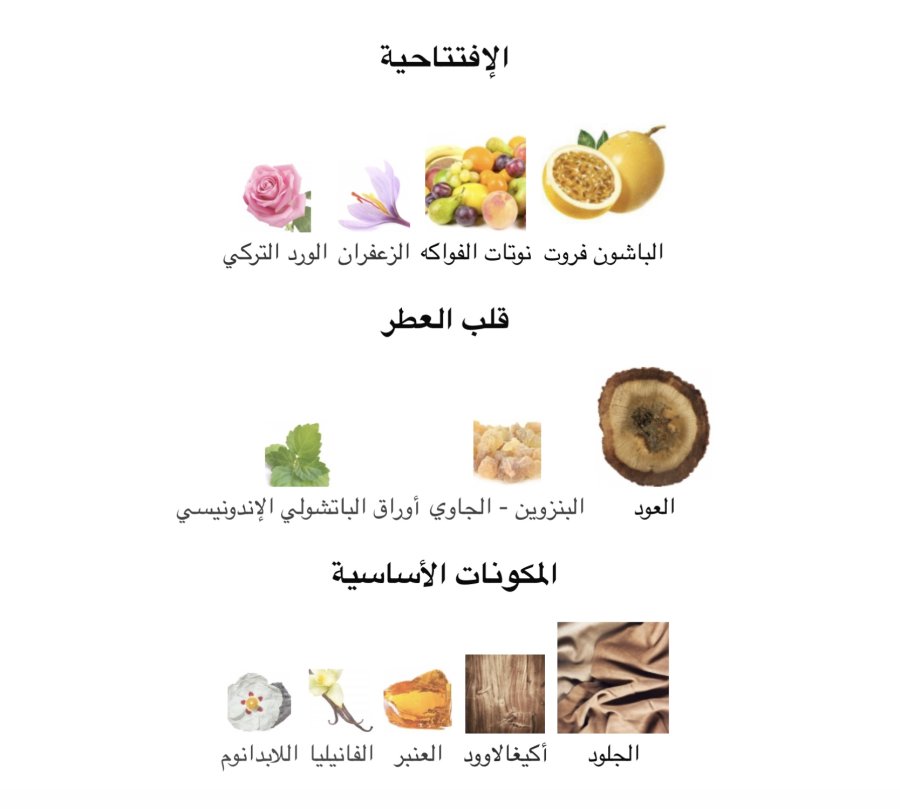 •المقدمة: فاكهة الباشن فروت 🥭، نوتات فواكه 🍇، الزعفران 🌸، الورد التركي 🌹