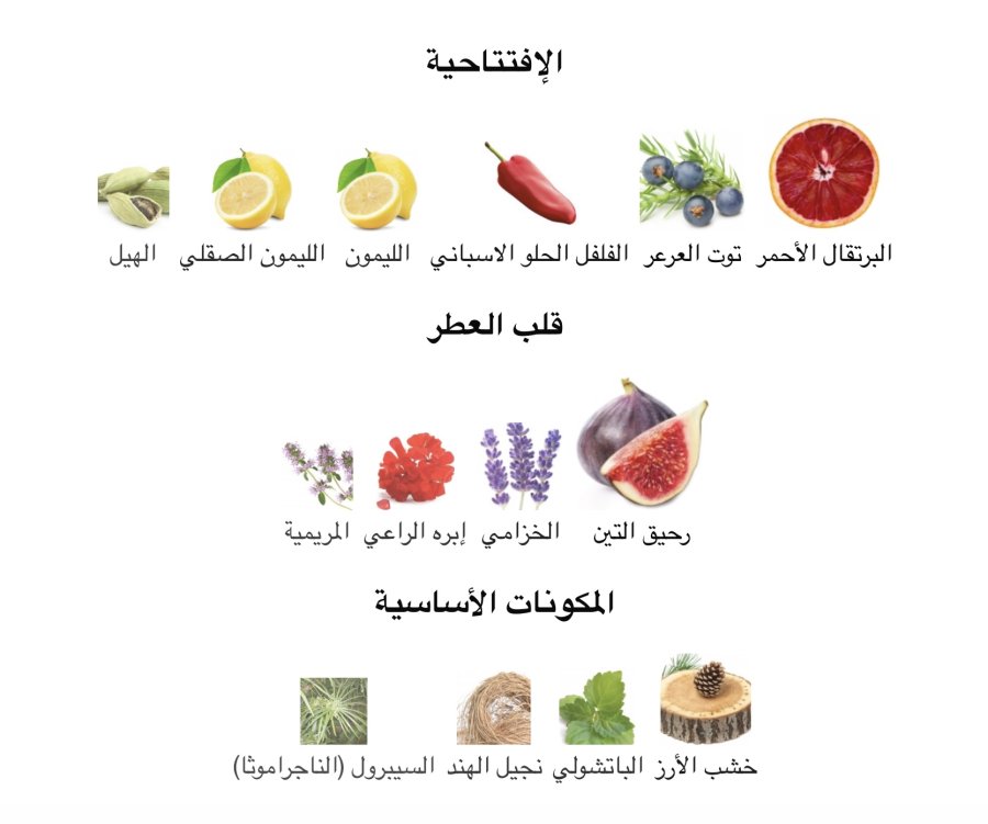• المقدمة: البرتقال الدموي 🍊، توت العرعر 🌿، الفلفل الحار 🌶️، الليمون 🍋، الليمون الصقلي 🍋، الهيل 🌱