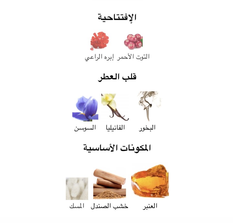 - القاعدة: العنبر ✨، خشب الصندل 🌲، المسك 🤍