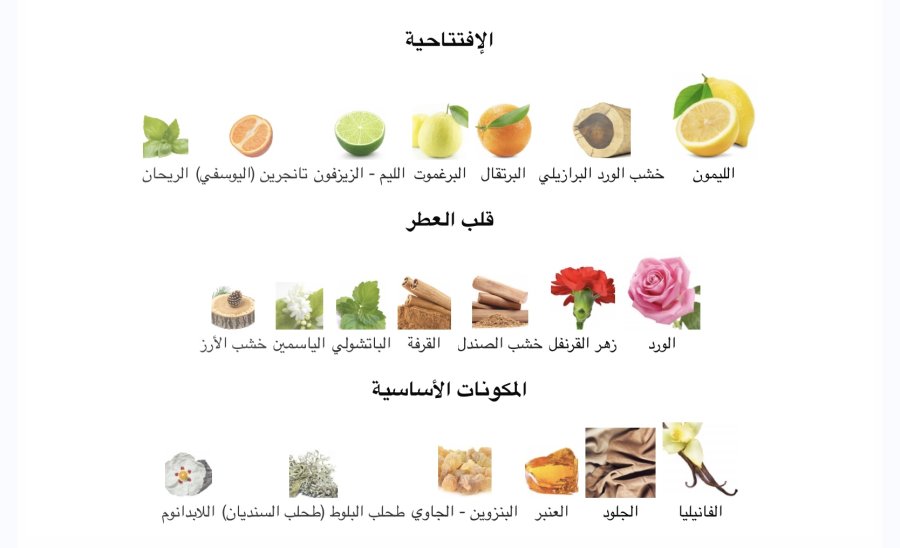 •المقدمة: الليمون 🍋 - خشب الورد البرازيلي 🌳 - البرتقال 🍊 - البرغموت 🍋 - اللايم 🍈 - اليوسفي 🍊 - الريحان 🌿