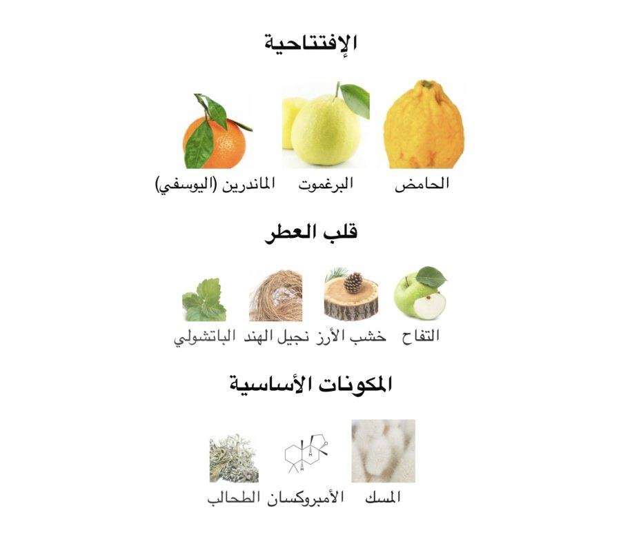 •القلب: التفاح 🍏، خشب الأرز 🌲، نجيل الهند 🌾، الباتشولي 🌿