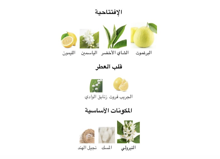 •المقدمة: البرغموت 🍋، الشاي الأخضر 🍃، الياسمين 🌸، الليمون 🍋