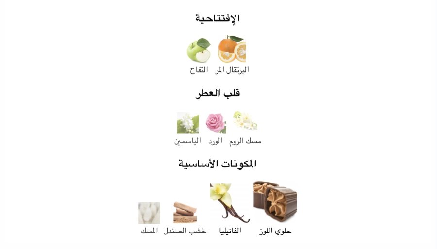 •القاعدة: البرالين 🍬، الفانيليا 🍮، خشب الصندل 🪵، المسك 🤍
