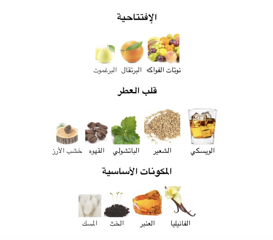 •القلب: الويسكي 🥃، المالت، الباتشولي 🌿، القهوة ☕، والأرز 🌲