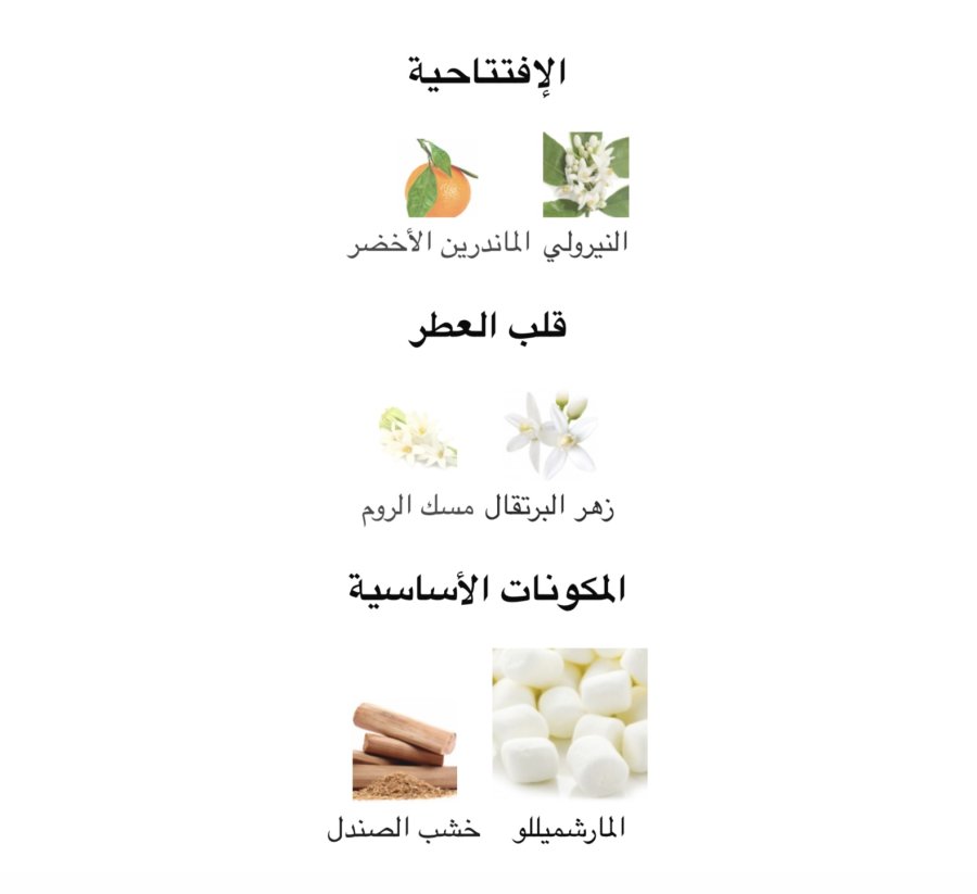 • القلب: زهر البرتقال 🍊🌼، مسك الروم 🌸