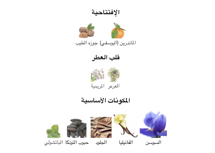 •القاعدة: السوسن 🌸، الفانيليا 🍮، الجلد 🤎، حبوب التونكا 🌰، الباتشولي 🌿