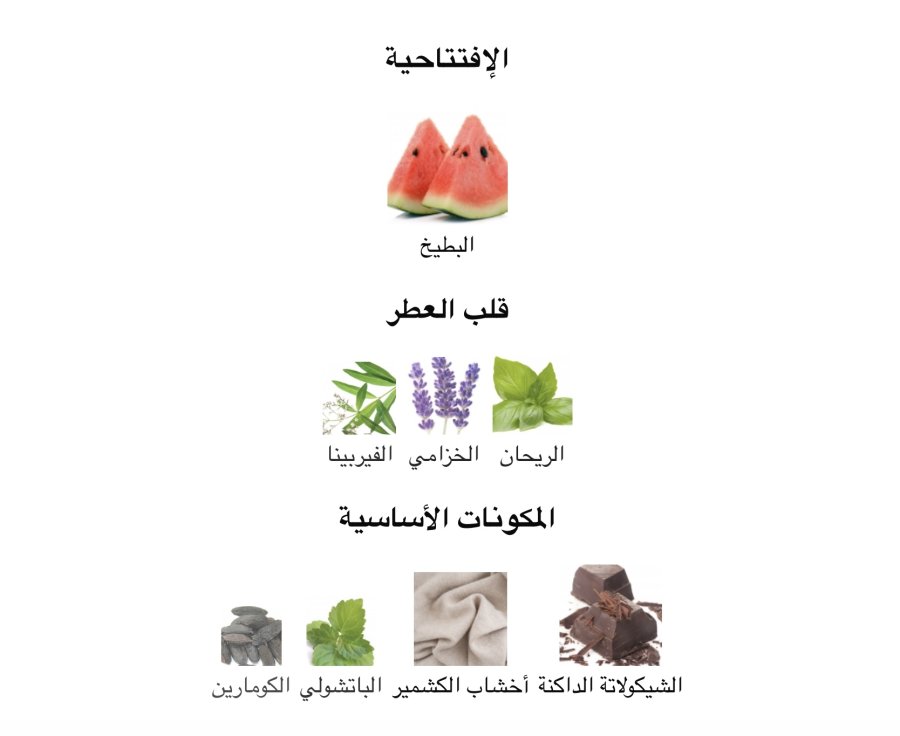 •القاعدة: الشوكولاتة الداكنة 🍫، الكشميران 🌫️، الباتشولي 🌿، الكومارين 🌾