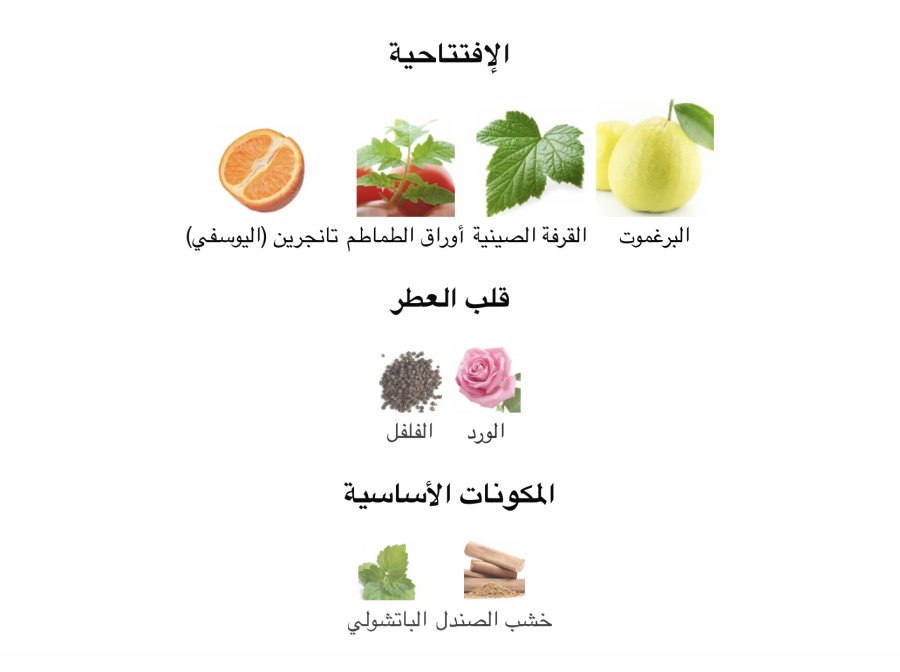 •المقدمة: البرغموت 🍋، الكاسيا 🌿، أوراق الطماطم 🍃، اليوسفي 🍊