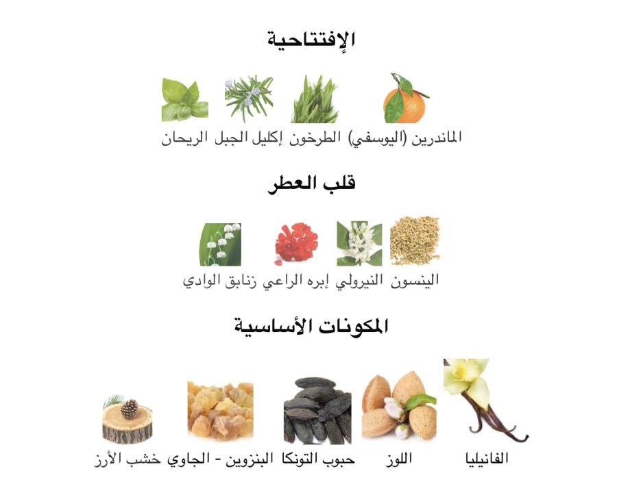 • القاعدة: الفانيلا 🍦، اللوز 🌰، حبوب التونكا 🌿، البنزوين ✨، الأرز 🌲