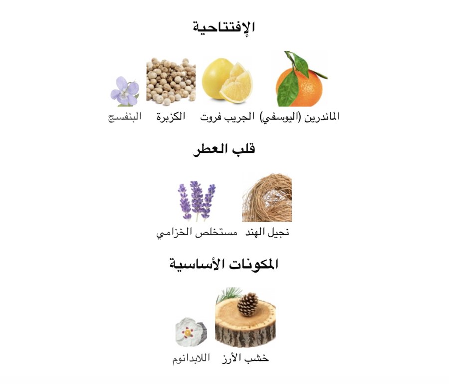 • المقدمة: اليوسفي 🍊، الجريب فروت 🍋، الكزبرة 🌿، البنفسج 💜