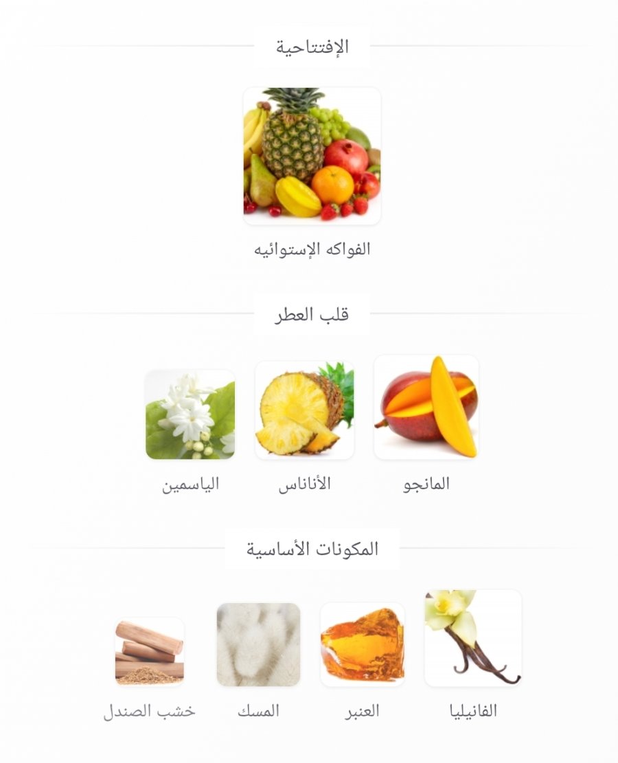 • القاعدة: الفانيليا، العنبر، المسك، خشب الصندل