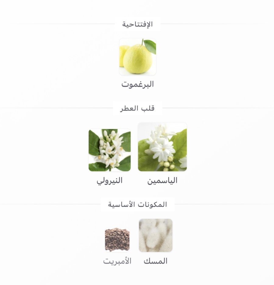 • القلب: الياسمين 🌼، النيرولي 🌿