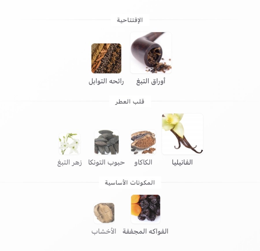 • القلب: الفانيليا 🍮، الكاكاو 🍫، التونكا 🌰، زهور التبغ 🌼