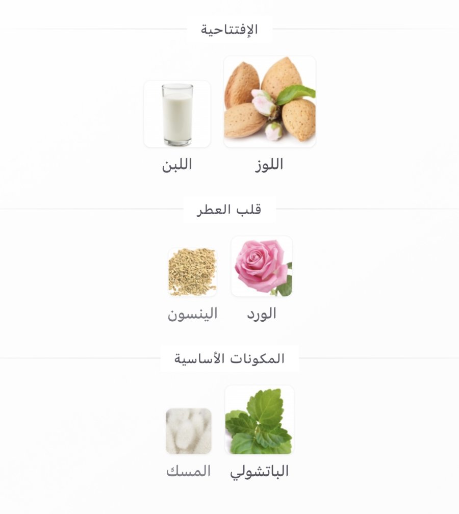 • القاعدة: الباتشولي 🌿، المسك 🤍