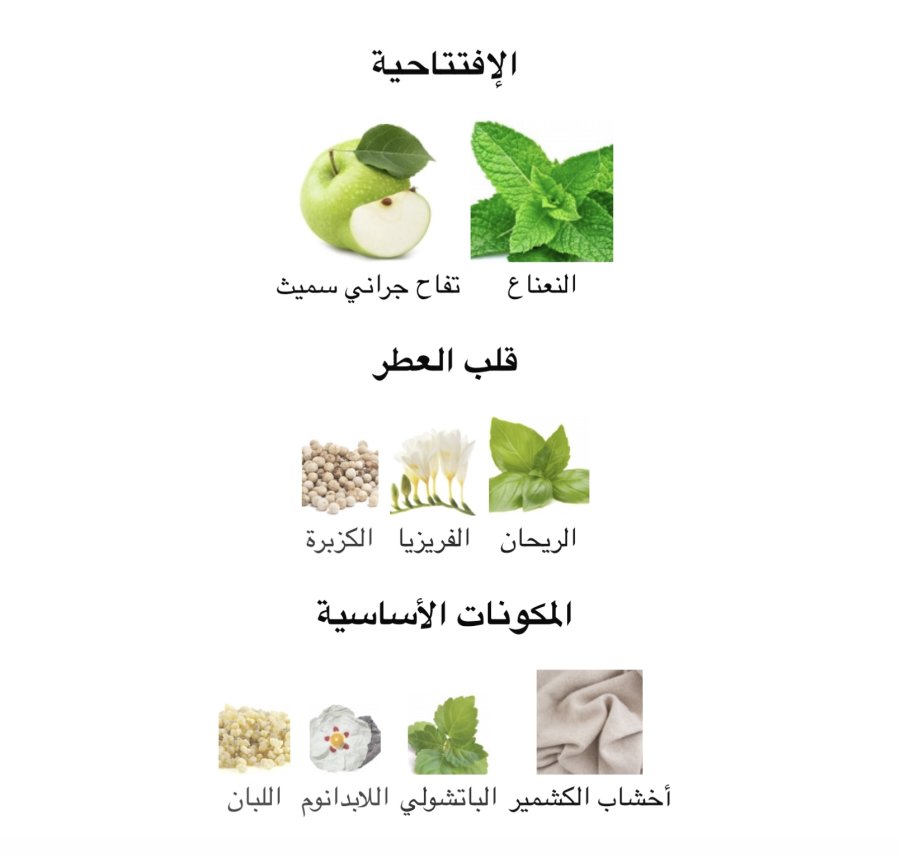 • القاعدة: الكاشميران ✨، الباتشولي 🌿، اللبدانوم 🌿، اللبان العطري 🌳
