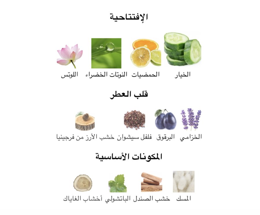 - المقدمة: الخيار 🥒، الحمضيات 🍋، نوتات خضراء 🌿، زهرة اللوتس 🌸