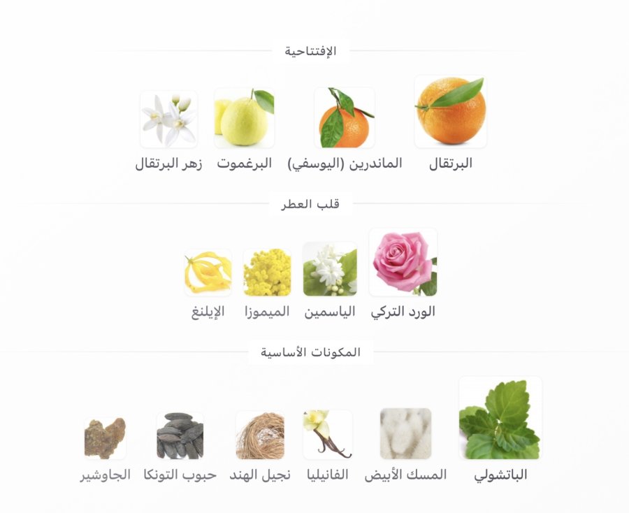 • المقدمة: البرتقال 🍊، المندرين 🍊، البرغموت 🍋، زهر البرتقال 🌸