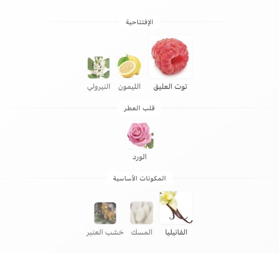 • المقدمة: التوت الأحمر 🍓، الليمون 🍋، نيرولي 🌸
