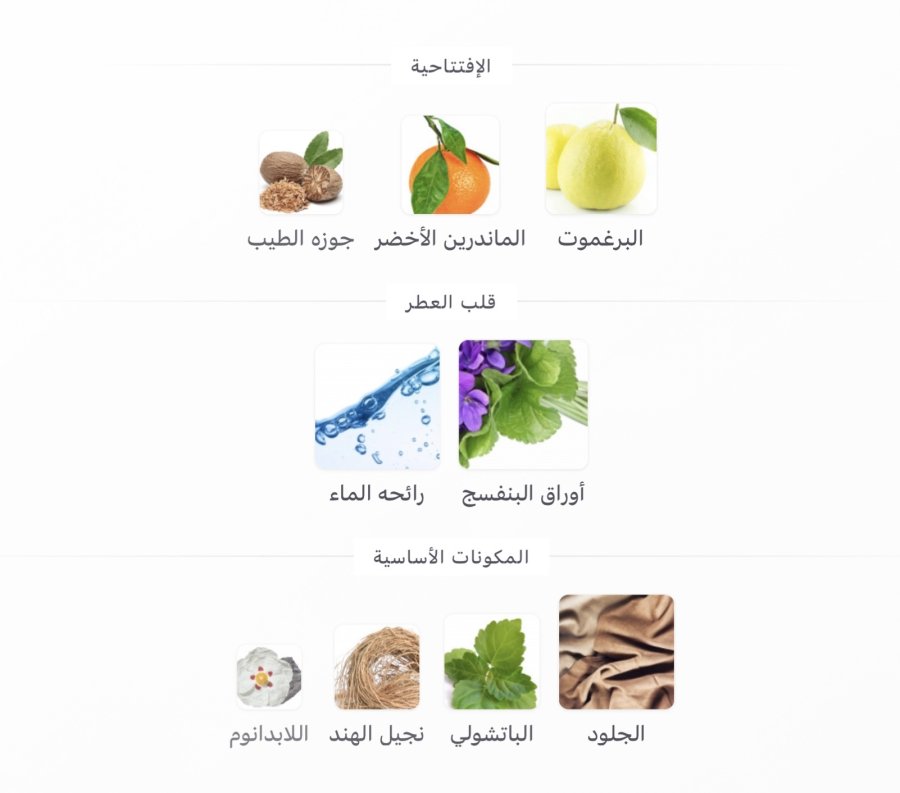 • القاعدة: الجلد 🖤، الباتشولي 🌿، نجيل الهند 🌱، اللابدانوم 🌿