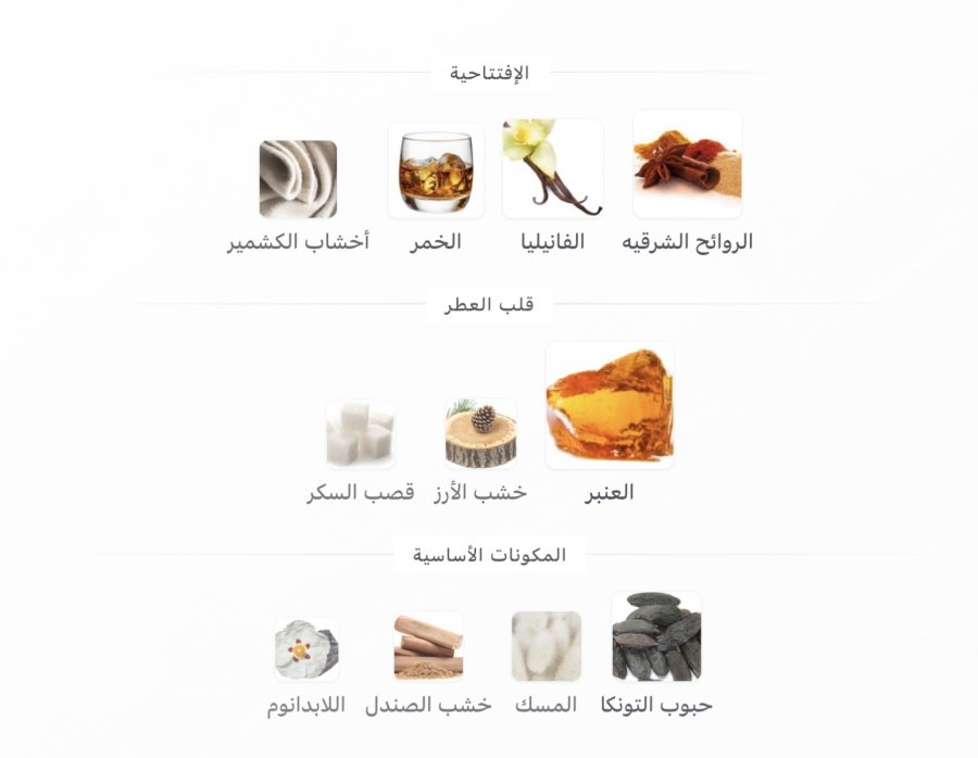 • المقدمة: نوتات شرقية 🌶️، قرن الفانيليا 🍦، نوتات كحولية 🥃، خشب الكشمير 🌲