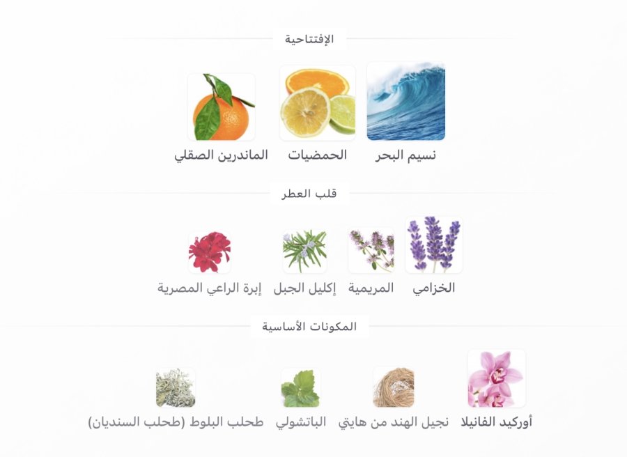 • القاعدة: أوركيد الفانيليا 🌸، نجيل الهند الهايتي 🌿، الباتشولي 🌿، طحلب البلوط 🌿