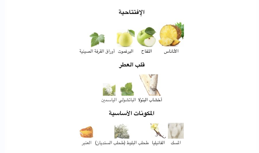 •القلب: خشب البتولا 🌲، الباتشولي 🍃، الياسمين 🌼
