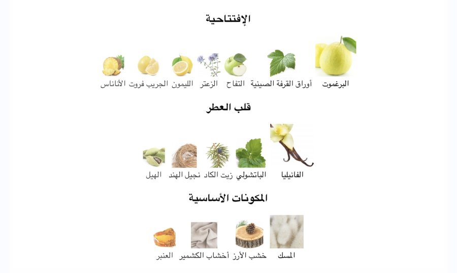 •المقدمة: البرغموت 🍋، الكشمش الأسود 🫐، التفاح 🍏، الزعتر 🌿، الليمون 🍋، الجريب فروت 🍊، الأناناس 🍍