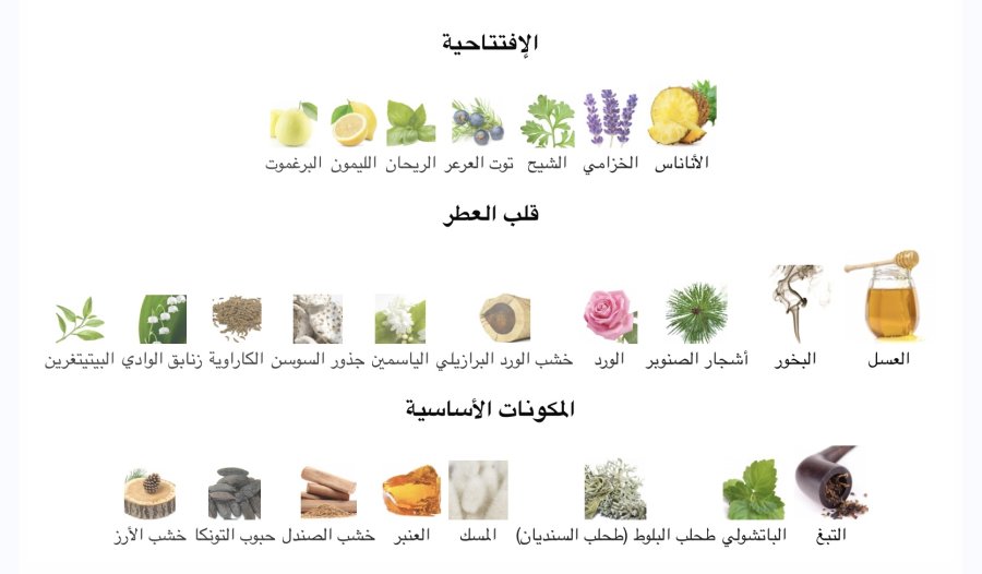 •القلب: العسل 🍯، البخور 🌫️، شجرة الصنوبر 🌲، الورد 🌹، خشب الورد البرازيلي 🌳، الياسمين 🌼، جذور السوسن 🌸، الكراوية 🌿، زنبق الوادي 🤍، البتيتغرين 🌿