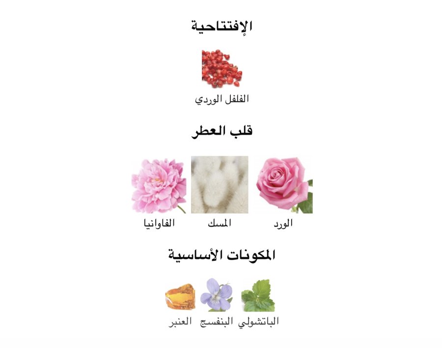 • القلب: الورد 🌹، المسك 🤍، الفاوانيا 🌺