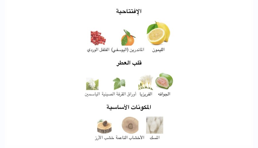 • القلب: الجوافة 🥭، الفريزيا 🌼، الكشمش الأسود 🍇، والياسمين 🌸