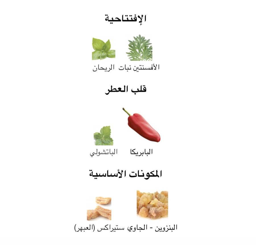 - القلب: البابريكا الحارة 🌶️، الباتشولي 🌿