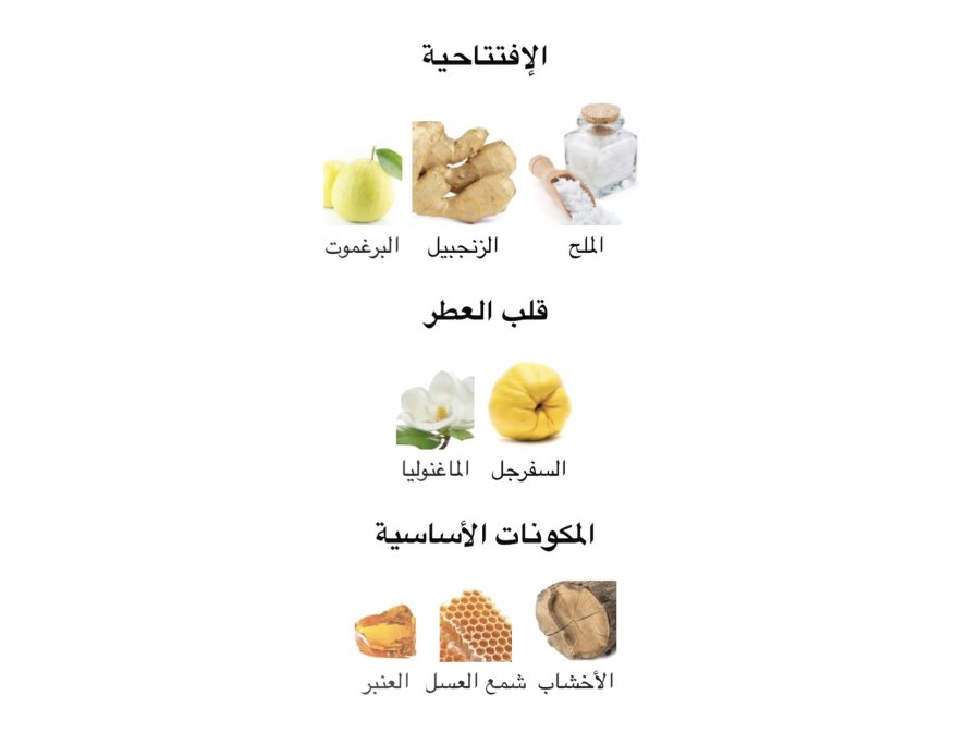 - القاعدة: نوتات خشبية 🌲، شمع العسل 🍯، العنبر ✨
