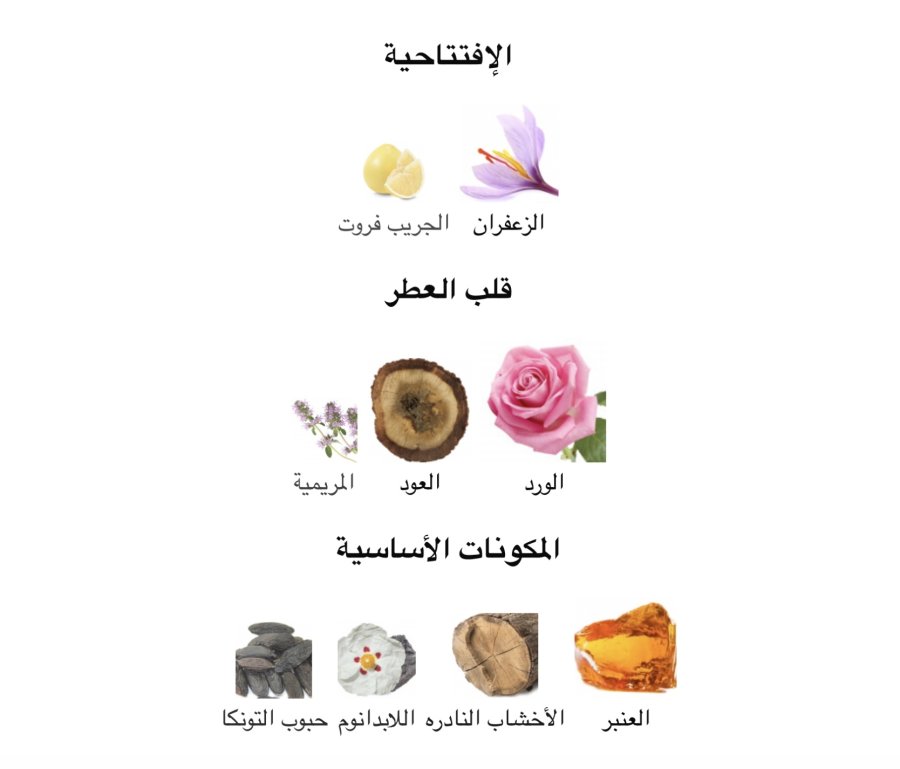 • القلب: الورد 🌹، العود 🌿، المريمية 🌱