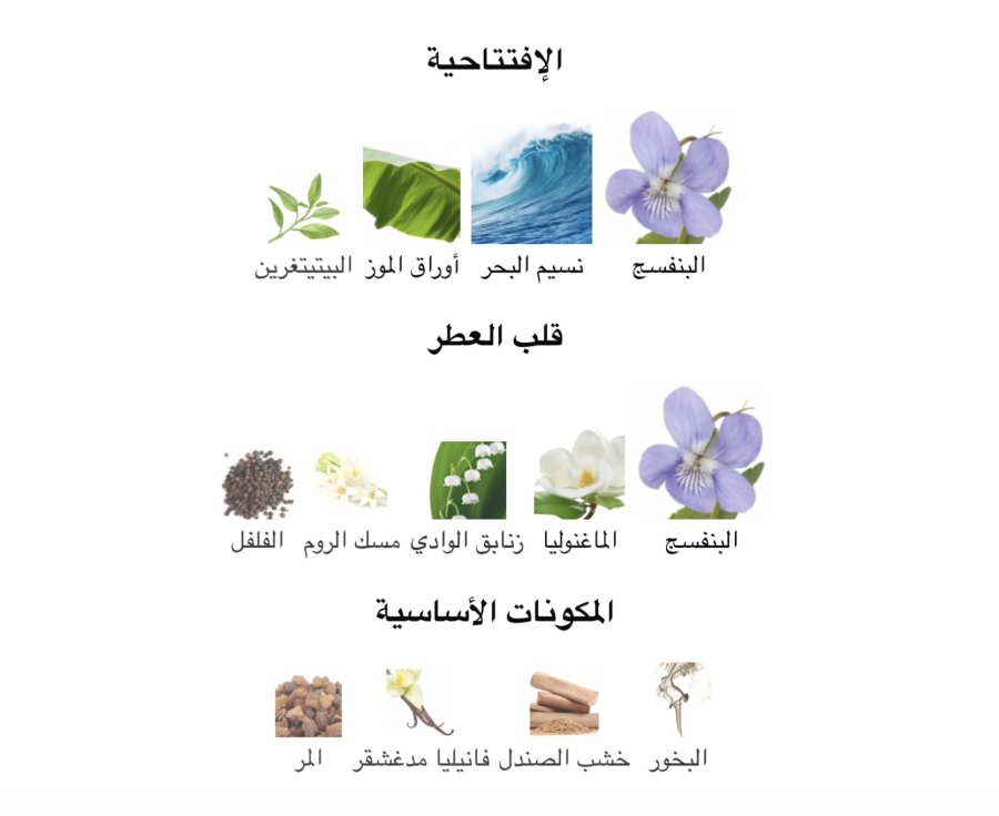 •المقدمة: البنفسج 💜 - نوتات بحرية 🌊 - ورق الموز 🍃 - البتيتغرين 🌿