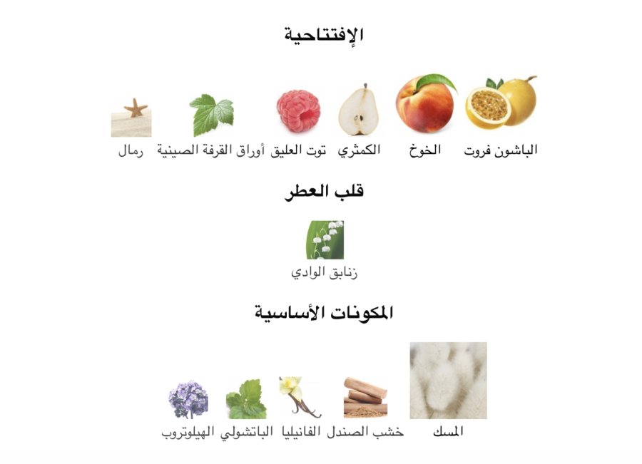 •القاعدة: المسك 🤍، خشب الصندل 🌳، الفانيليا 🍮، الباتشولي 🌿، زهرة الهليوتروب 🌸