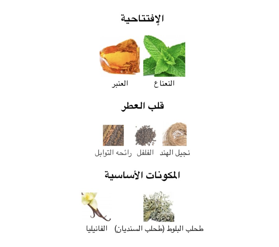 • القلب: نجيل الهند 🌿، الفلفل الأسود ⚫، التوابل 🌶️