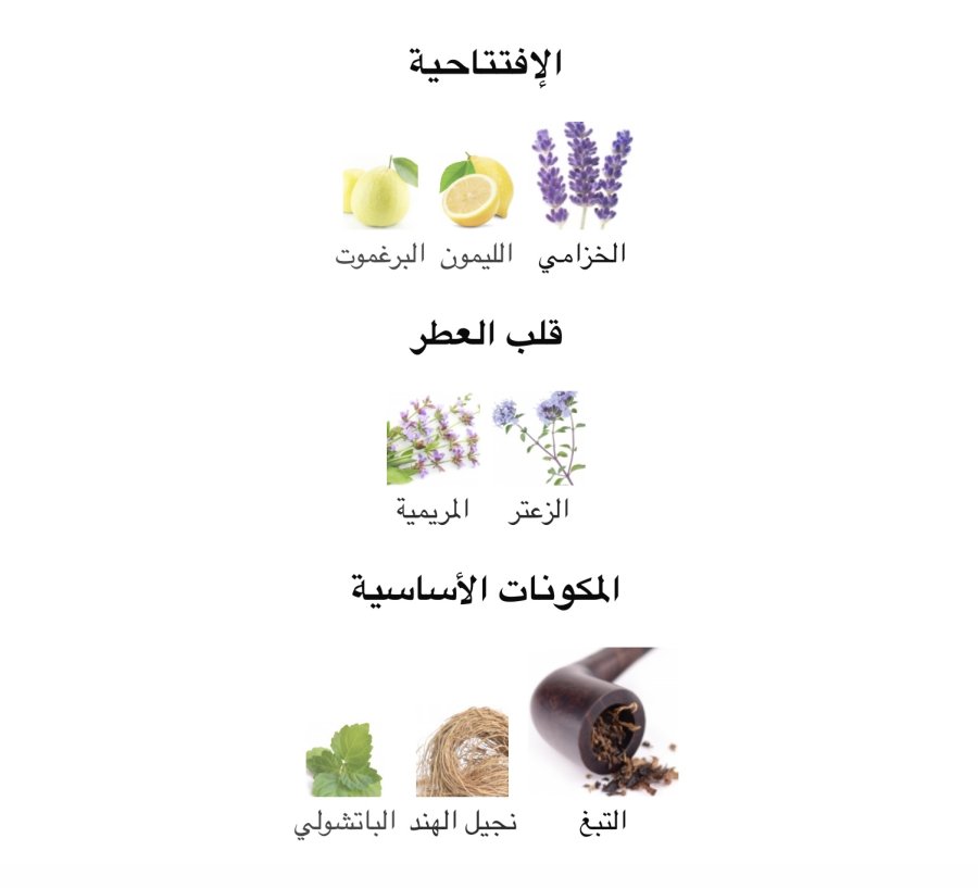 •القاعدة: التبغ 🚬، نجيل الهند 🌱، الباتشولي 🍃
