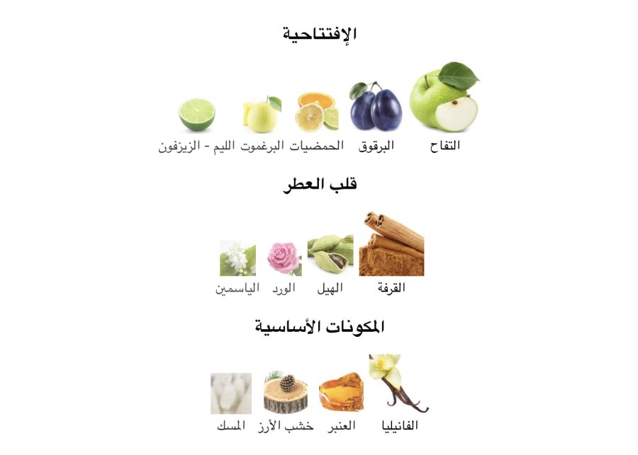 •القلب: القرفة 🌰، الهيل 🌿، الياسمين 🌼، الورد 🌹