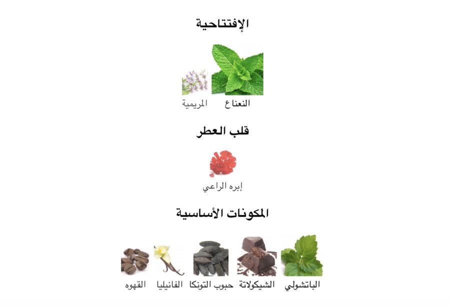 •القاعدة: الباتشولي 🌿، الشوكولاتة 🍫، حبوب التونكا 🌰، الفانيليا 🍮، القهوة ☕