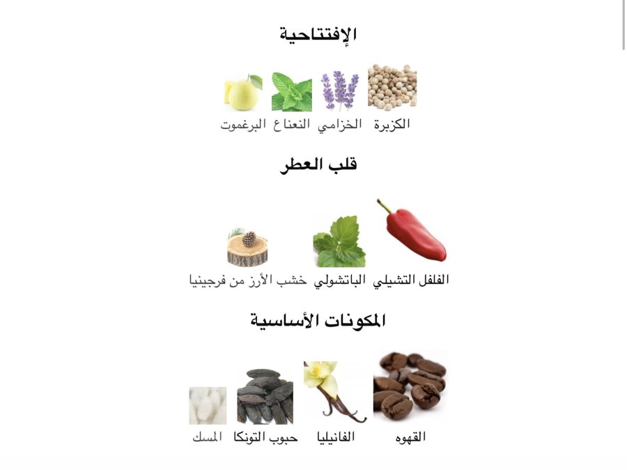 • القاعدة: القهوة ☕، الفانيليا 🍦، التونكا 🌰، المسك 🤍