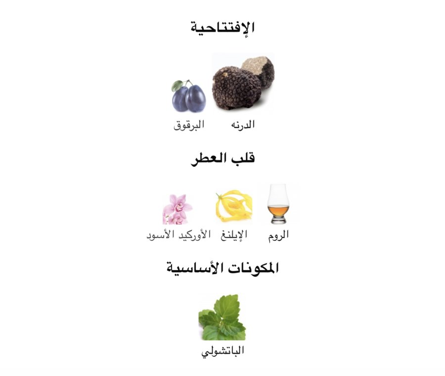 • القلب: الروم 🍷، الإيلنغ إيلنغ 🌼، الأوركيد السوداء 🖤