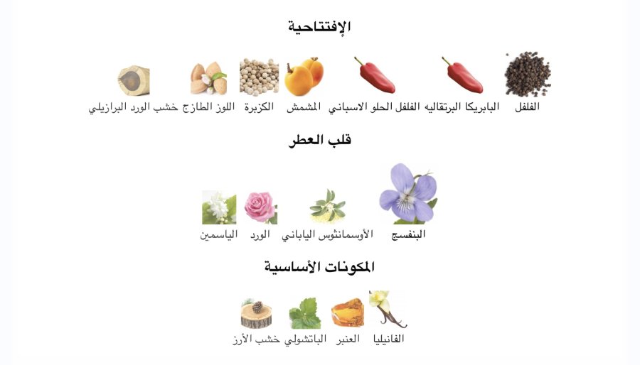 •القاعدة: الفانيليا 🍮، الباتشولي 🍃، العنبر 🧡، خشب الأرز 🪵