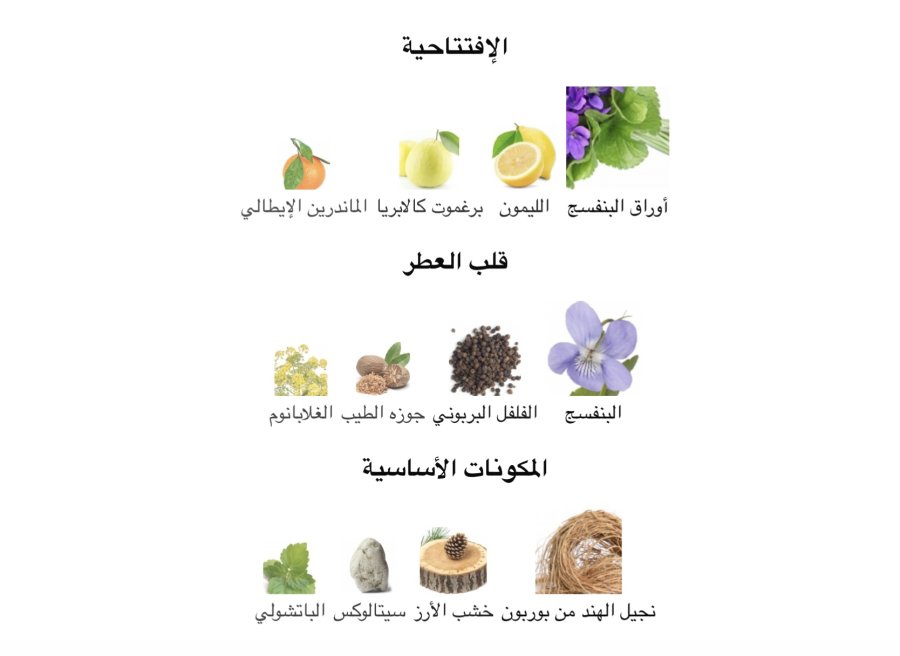 •المقدمة: أوراق البنفسج 🌿، الليمون 🍋، البرغموت الكالابري 🍊، المندرين الإيطالي 🍊