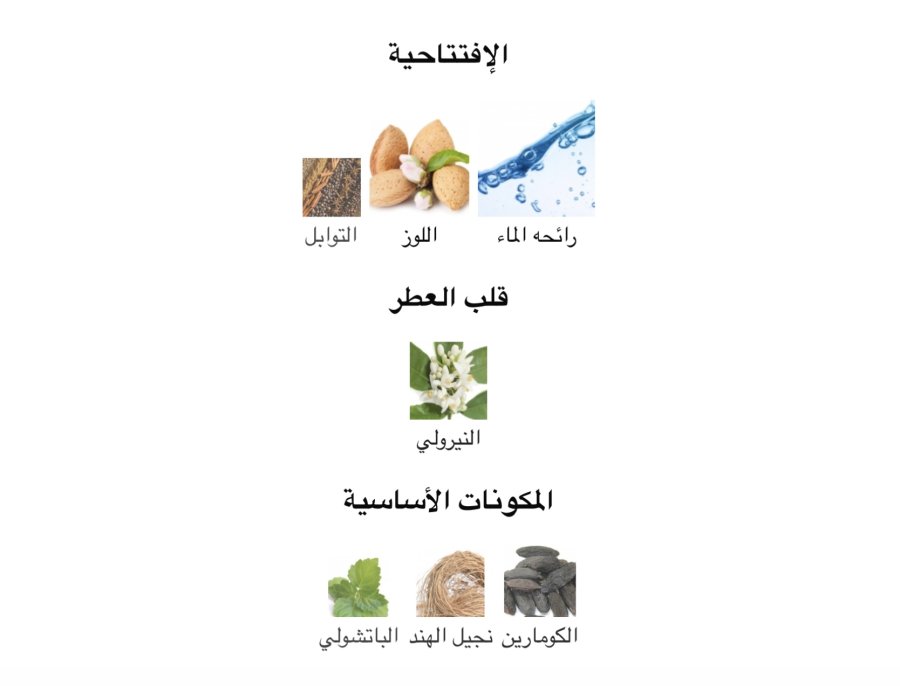 • القاعدة: الكومارين 🌿، نجيل الهند 🌱، الباتشولي 🌳