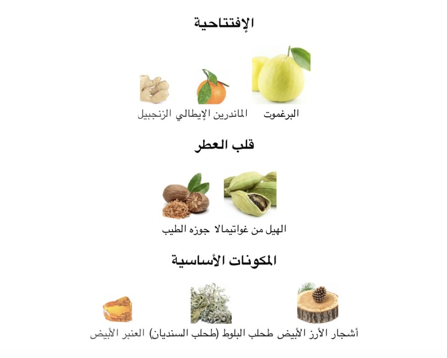 - المقدمة: البرغموت 🍃، الماندرين الإيطالي 🍊، الزنجبيل 🌶️