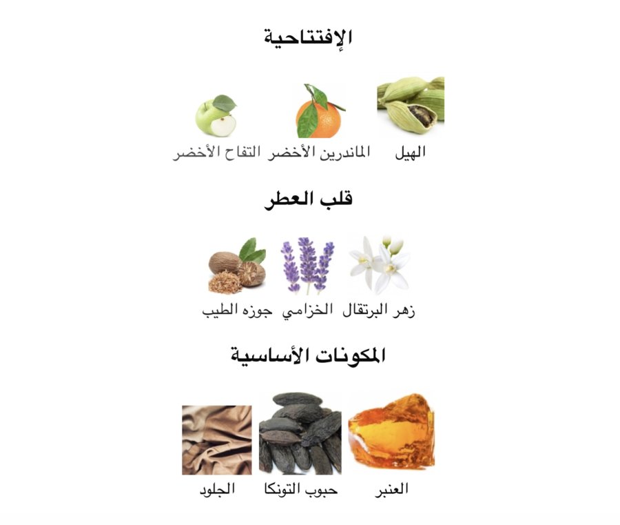 • القلب: زهر البرتقال 🍊، اللافندر 💜، جوزة الطيب 🌰