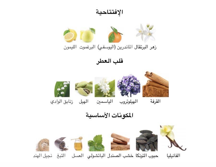 •المقدمة: زهرة البرتقال 🍊، اليوسفي 🍊، البرغموت 🍋، ليمون أمالفي 🍋